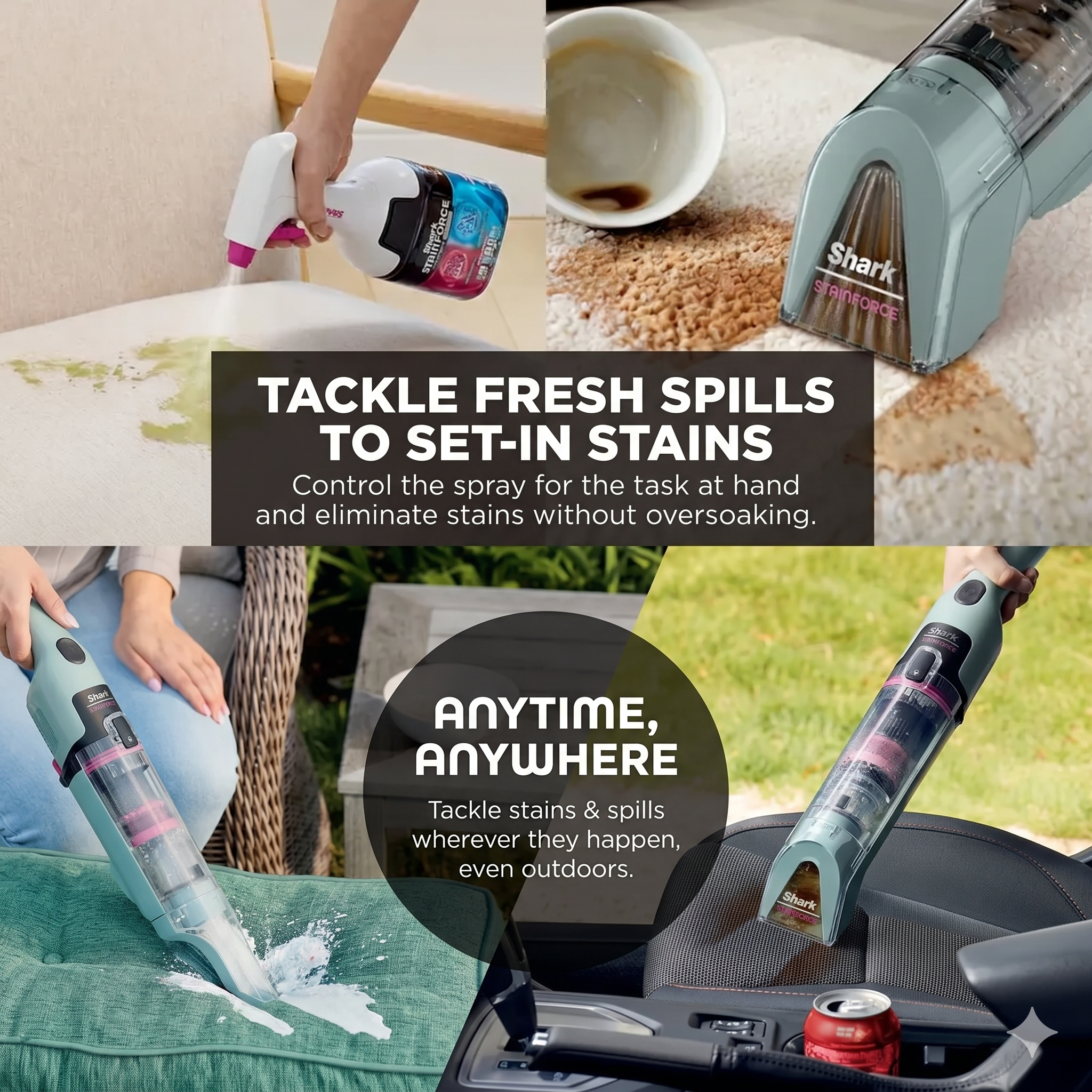 The delivers professional-grade power in a cordless, go-anywhere design. Spray, Scrub, and Extract—watch the mess disappear before your eyes.